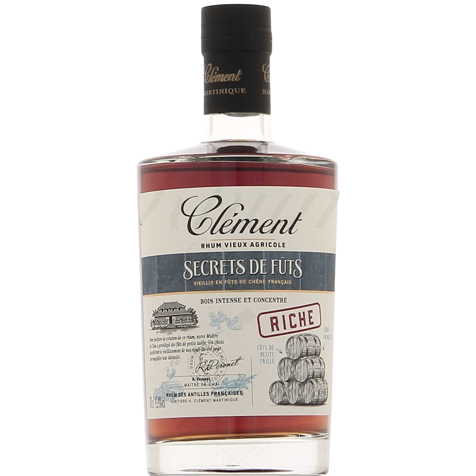 Clément Vieux Secrets de fûts Riche est un rhum agricole issu d’une série qui illustre l’influence du bois sur le rhum. Créée par Robert Peronet, l’ancien maître de chai de la maison martiniquaise Clément, elle met en valeur le travail de préparation et de sélection des fûts.