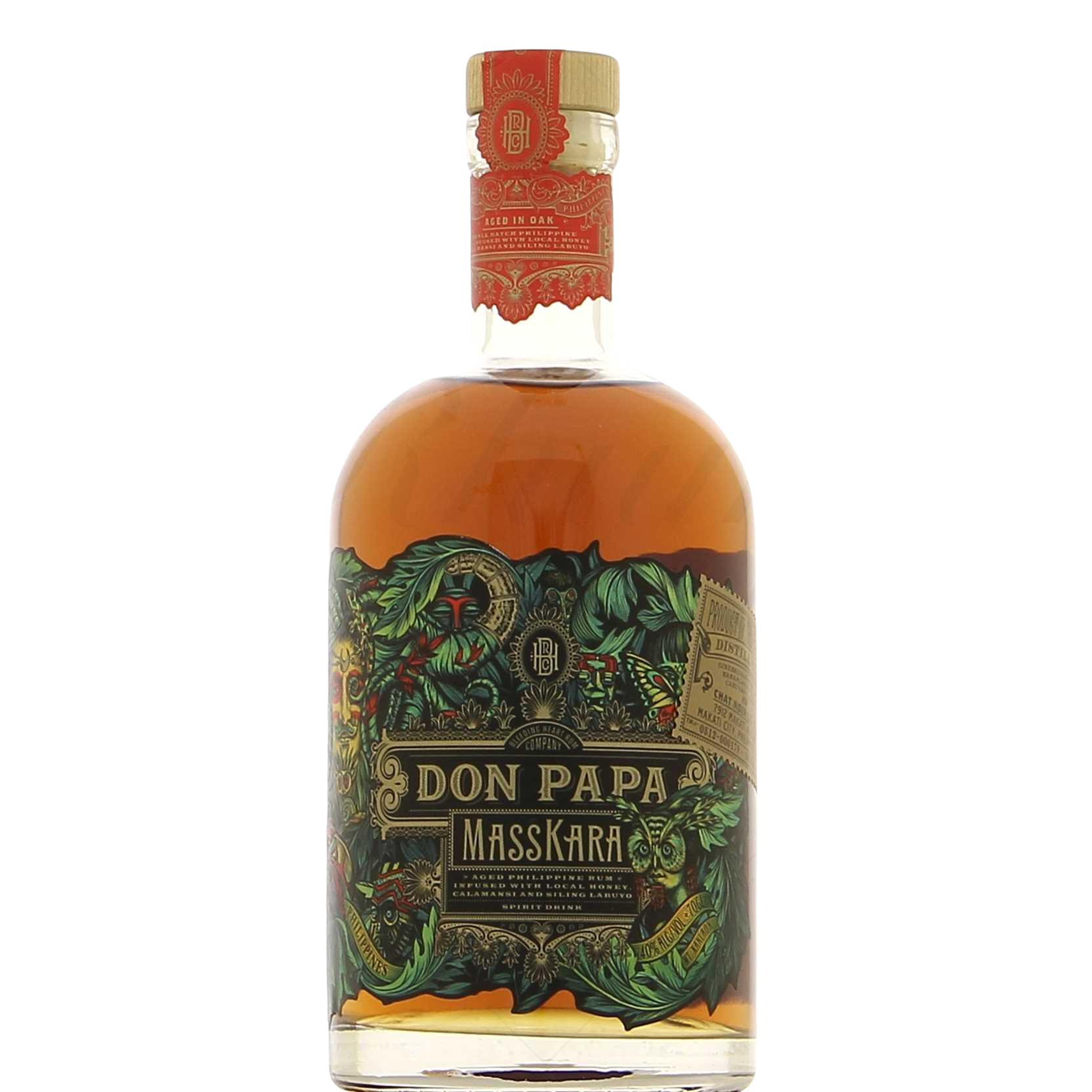 Don Papa Masskara est un rhum infusé élaboré à partir de mélasse qui provient de cannes à sucre cultivées sur l’Île de Negros, aux Philippines.