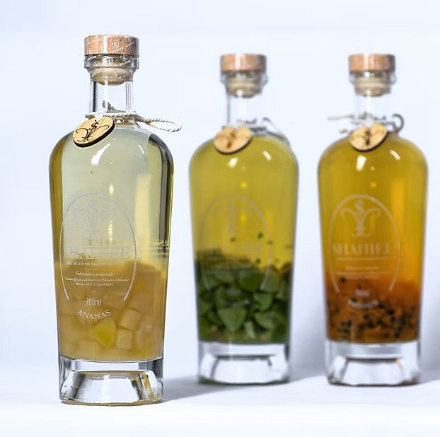 SHAHIEE, bien plus qu’une simple eau-de-vie, raconte une histoire authentique, celle d’un héritage inestimable et d’un hommage vibrant à la richesse du terroir ivoirien. Son nom, né de la fusion de SHEFA – les plantations familiales où tout commence – et de AHIEE, qui signifie "palmier" en langue locale, incarne ses origines profondes
